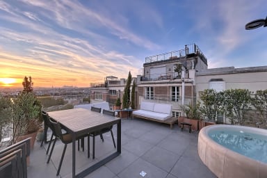 The real highlight of this property is its private rooftop terrace, facing west, perfect for admiring the sunset over Paris. You'll find a jacuzzi for your moments of relaxation, as well as an outdoor dining area to fully enjoy the beautiful Parisian evenings.