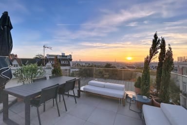 Stay in a spacious 100 m² house with a private rooftop offering breathtaking views of the Eiffel Tower. Enjoy a jacuzzi, a sunny west-facing terrace, and modern comforts, just a stone's throw from the Buttes-Chaumont and typical Parisian shops.