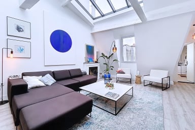 Stay in a spacious apartment of 70 m 2, located on the 6th floor of a historic building on the rue Saint-Martin, in the 3rd district of Paris. Facing South, the accommodation enjoys a beautiful light. Its location in the heart of the Marais places you close to many cultural sites, shops and restaurants, for a complete Parisian experience.