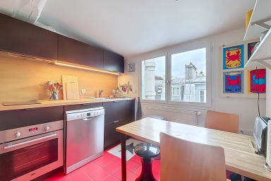 This 65 m² apartment offers a pleasant, bright, and colorful setting, ideal for a comfortable Parisian stay. It comprises a separate living room, perfect for relaxing after a day of sightseeing, and a fully equipped independent kitchen with a refrigerator, freezer, oven, dishwasher, kettle, toaster, and all necessary cooking utensils.