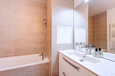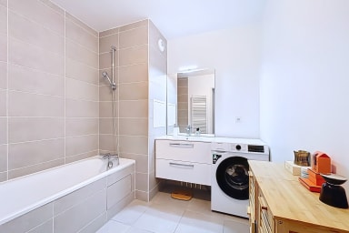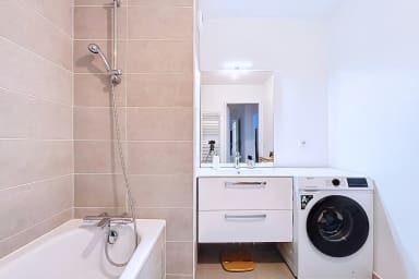 Modern 72m² apartment on the 1st floor with lift, located in Clichy-sur-Seine. Two queen-size bedrooms, two bathrooms including one with a bathtub, fully equipped kitchen, washing machine and satellite TV. Just 2 minutes' walk from Mairie de Clichy metro station (line 13), you'll be connected to Paris in a few stops. A functional and comfortable home for families or small groups.