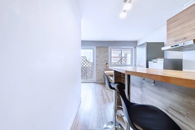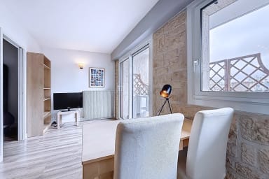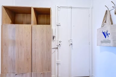 The apartment is located on the 7th floor of a secure building, accessible via a double-door badge entry system. A lift takes you directly to your floor, making arrival with luggage very easy. The apartment entrance is private and located directly on the landing when you arrive.