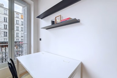 El apartamento está ubicado en la primera planta de un edificio de estilo Haussmann, sin ascensor. Se accede a través de las zonas comunes del edificio, por las escaleras.