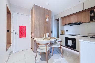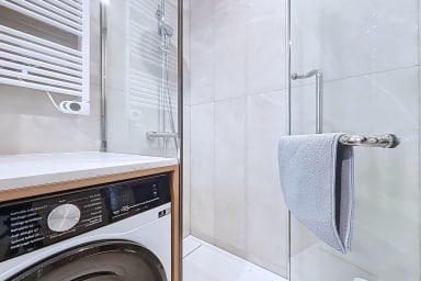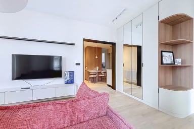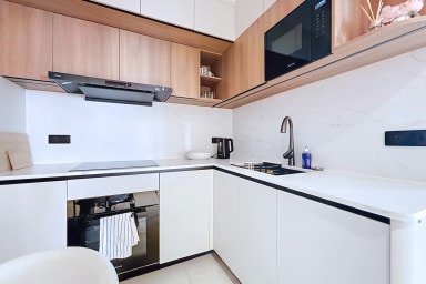 Este apartamento de 42 m² consta de un dormitorio con cama queen size, un salón, una cocina y un baño con ducha e inodoro.