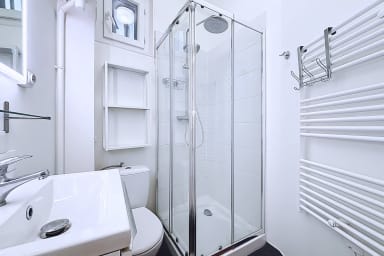 Ce logement de 70 m², situé au 1ᵉʳ étage avec ascenseur, comprend deux chambres : l’une équipée d’un lit king-size, l’autre d’un lit double 140 cm. La salle de bain dispose d’une douche et de toilettes. Vous trouverez également une cuisine fonctionnelle (réfrigérateur, congélateur, micro-ondes, toaster, machine à café, bouilloire…) ainsi qu’un salon idéal pour se détendre après une journée dans la capitale.
